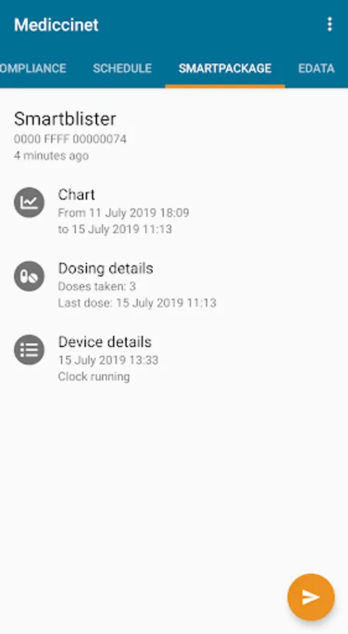 Mediccinet™ tracks medication intake and compliance for supported smart medication packages.