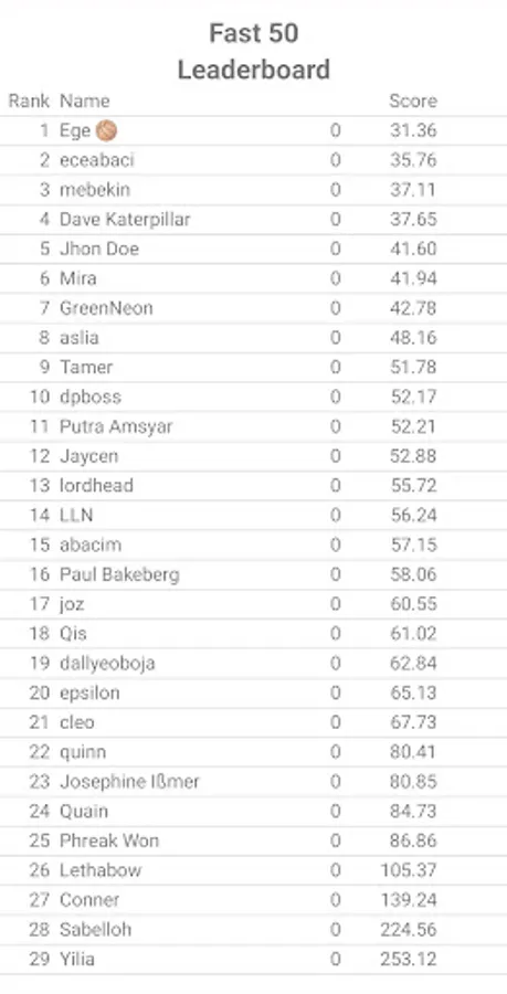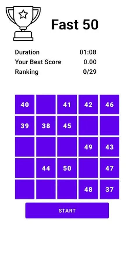 The new Quick 50 game has also been added. Find the numbers from 1 to 50 on the screen. Find out your eye-hand coordination ability.