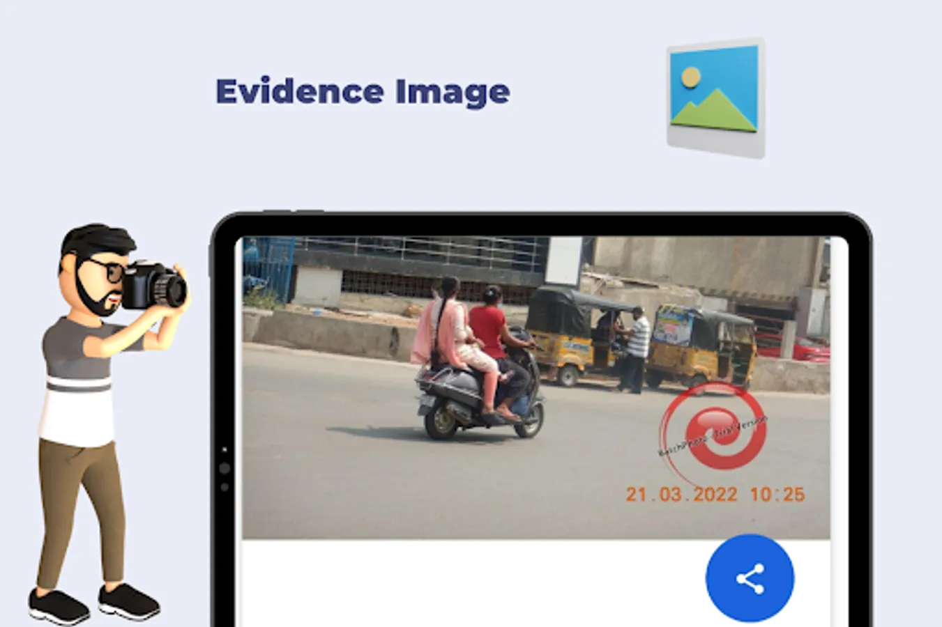 E Challan App Provides Violations Evidence Image and let user Share the Image with Friends and Family.