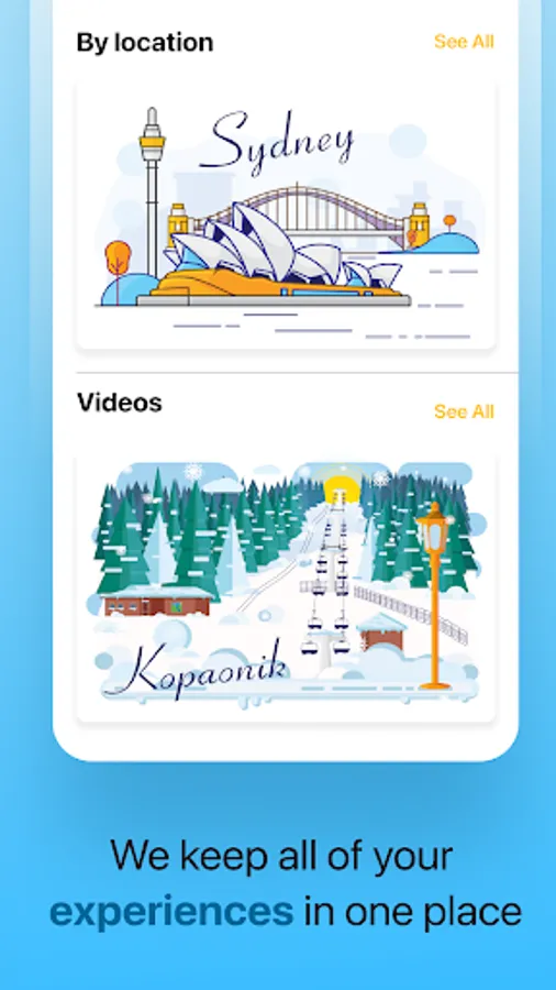 Automatic video creation: Each magnet has a location set in it, through which we will get your photos and transform them into a beautiful story and add some music. Or if you prefer you can choose to create it yourself with the highlights of your trip.