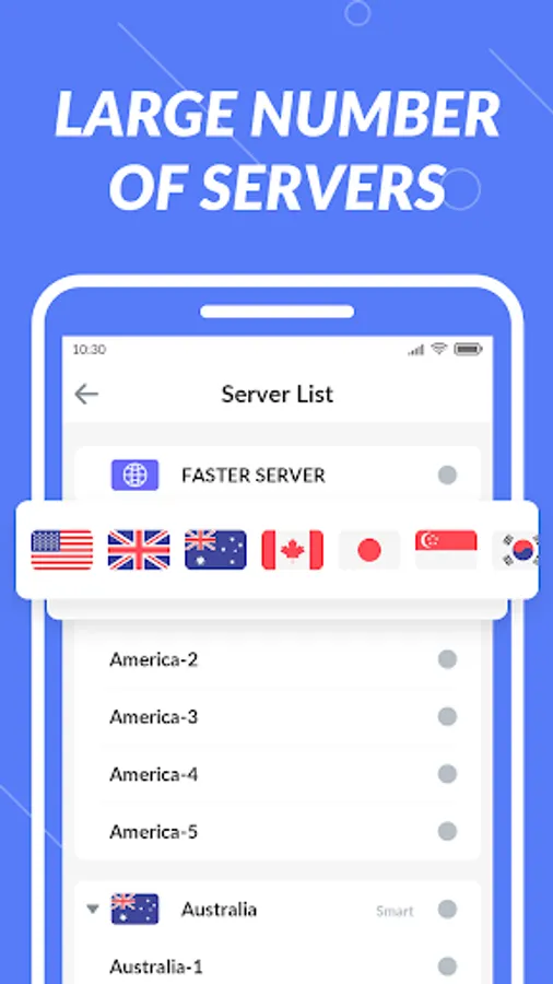 We have built a global VPN network included America, Europe and Asia, and expand to more country soon. Most servers are free to use, you can click the flag and change server as any times as you want.