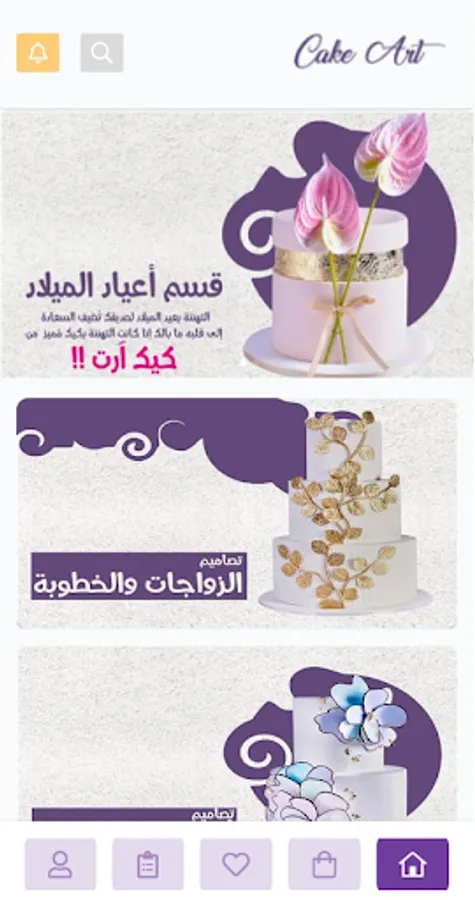•كيك أرت تطبيق يتيح لكم اختيار وتصميم كيك مناسباتكم بسهوله ، وبوجود عدة خيارات من الموردين ومصممي الكيك الخاص ، ويوفر للعميل الوقت والجهد والتنقل بين الموردين للبحث عن ما يناسب ذائقته ..