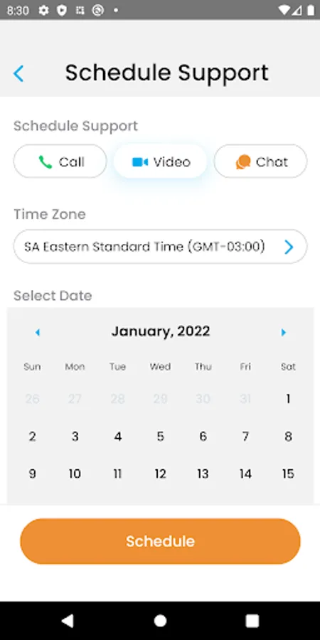 Schedule support sessions by specifying a designated time, date, and other related details.
