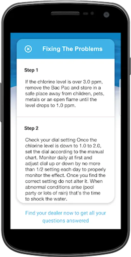 The FROG® Water Care mobile application works best with FROG® and FROG @ease brand test strips used according to the instructions provided with the products. Used accordingly, we believe the information provided may be useful to the consumer. However, King Technology, Inc., as owner of this mobile application, disclaims any and all representations or warranties as to the merchantability or fitness for any purpose of this mobile application or the information generated by its use. Use the FROG® Water Care mobile application and the information generated by the application at your own risk, and subject to the Terms of Use and Privacy Policy available at www.kingtechnology.com. If you do not agree to these terms, please do not use our water care testing information and tools.