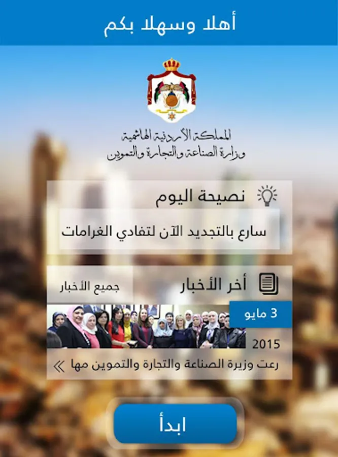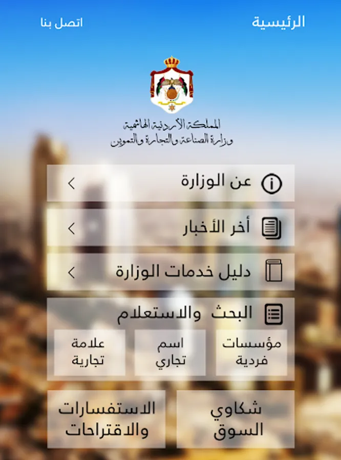 The application allow user to interact with Ministry of Industry and Commerce in Jordan through different Activities and screens