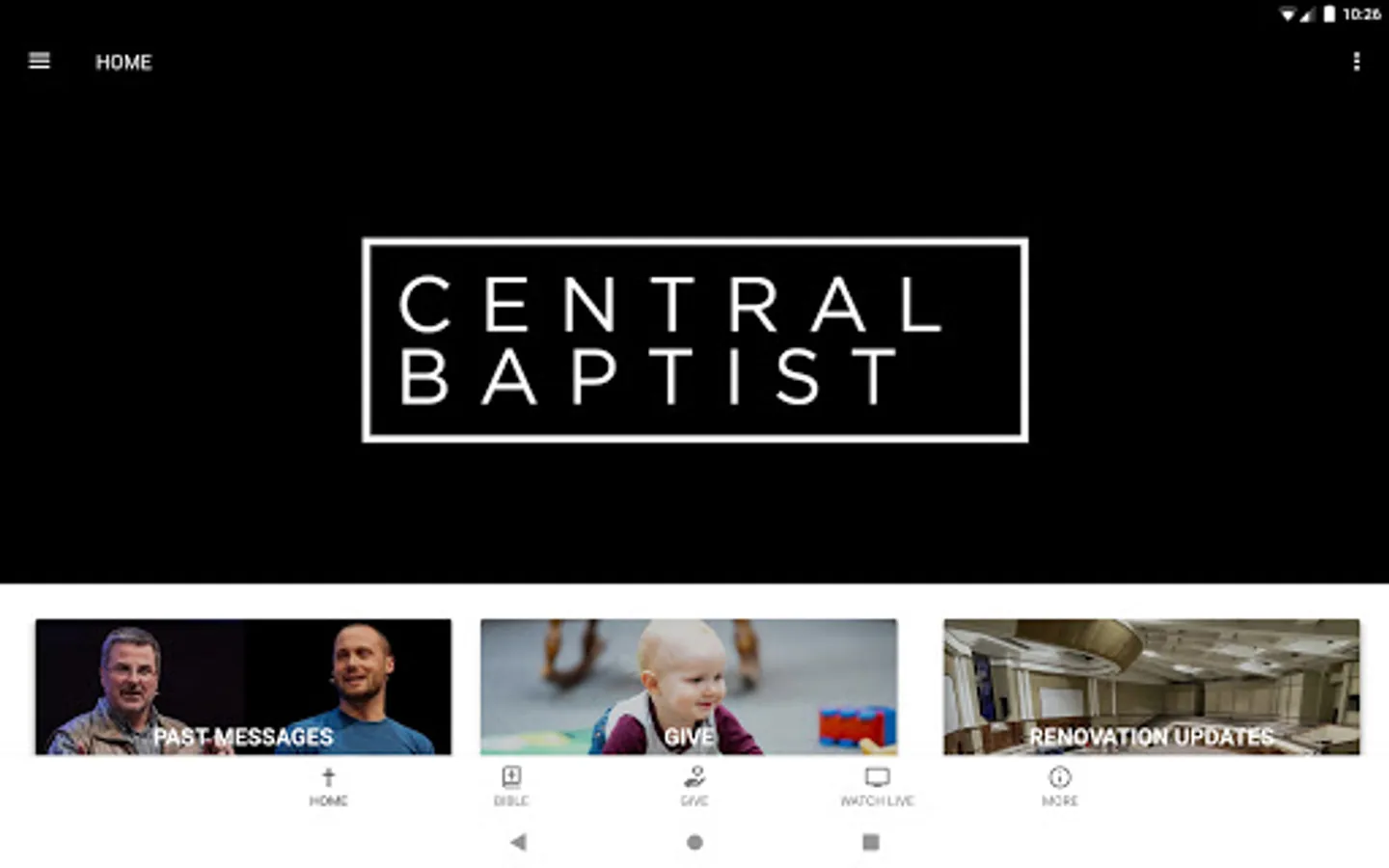 Connect and engage with our community through the Central Baptist app! Download our app to discover our media content, give a donation conveniently, or learn more about us.