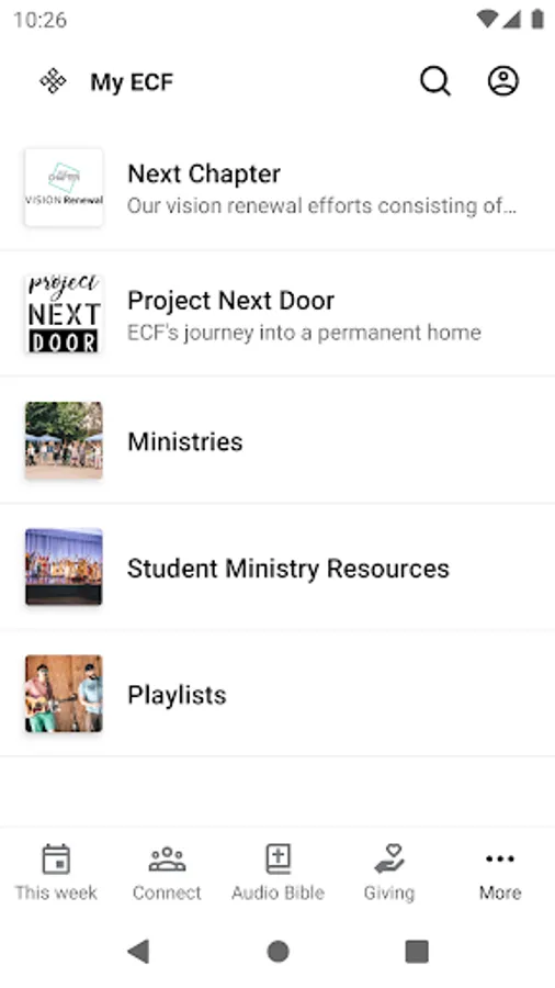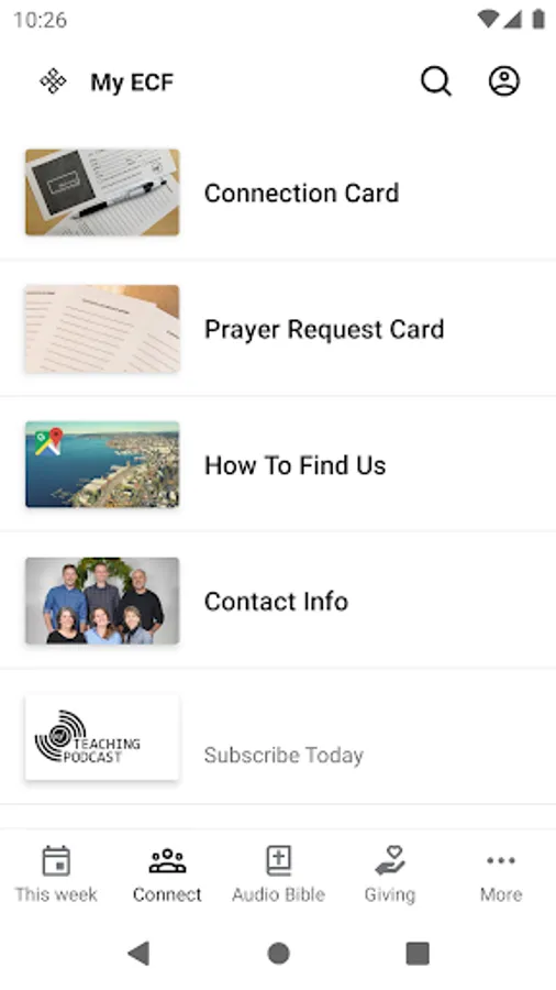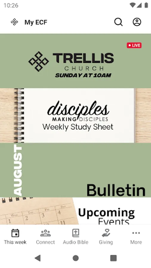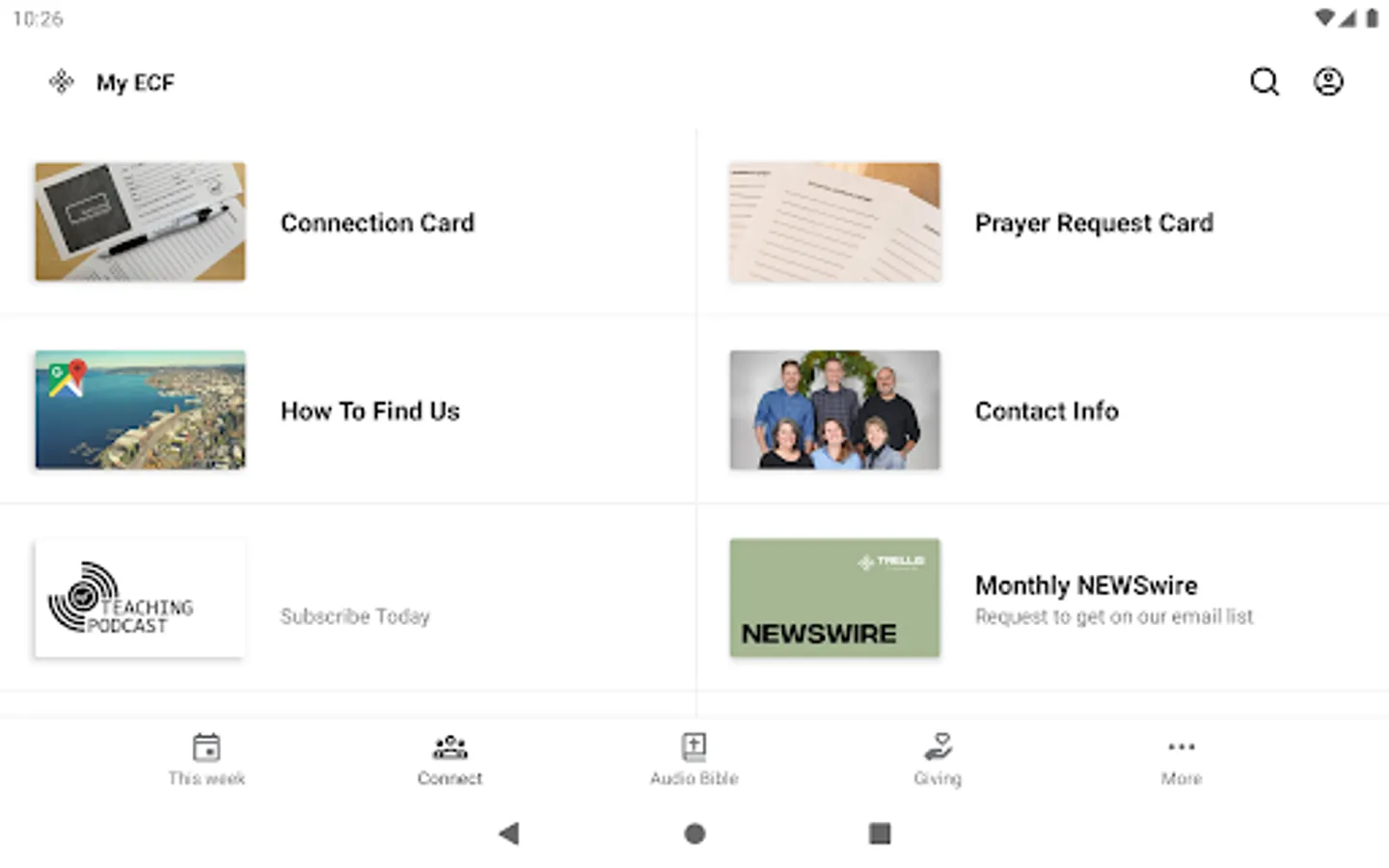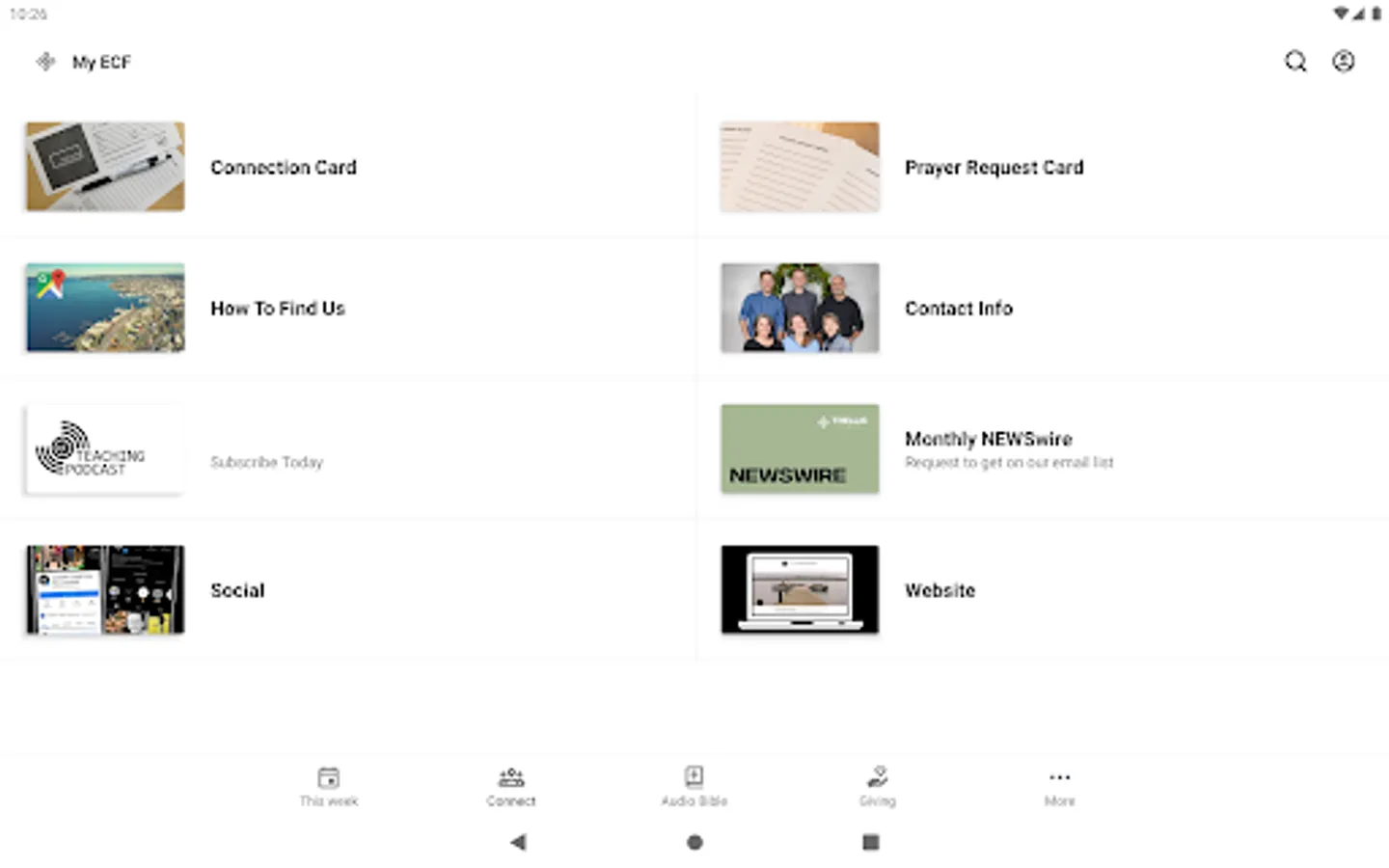 The ECF Connect APP allows you to stay connected through easy access to weekly teachings, events, and giving.