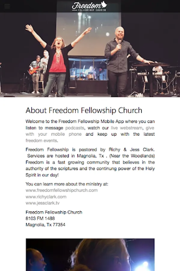 The Freedom Fellowship Church app is a great way to stay connected to the ministry of Pastors Richy & Jess Clark and keep up with ongoing events at Freedom.