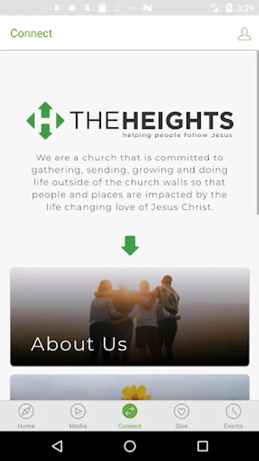 Connect and engage with our community through the Heights Church app! Download our app to discover our media content, donate, stay connected, get life group information, volunteer, and learn more about us.