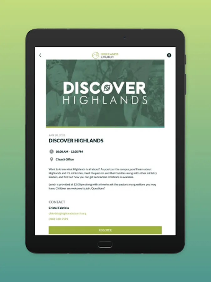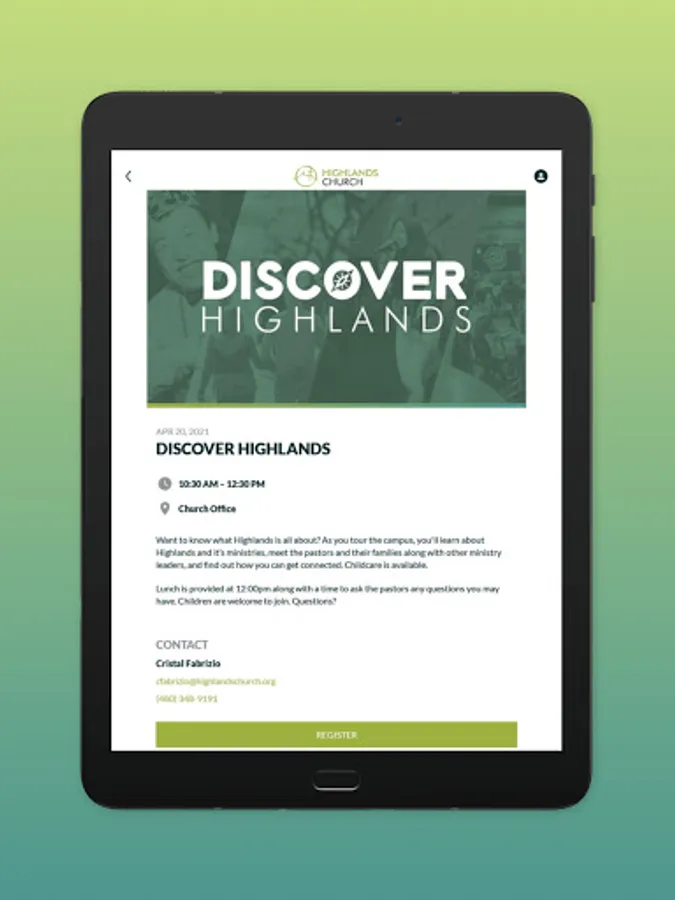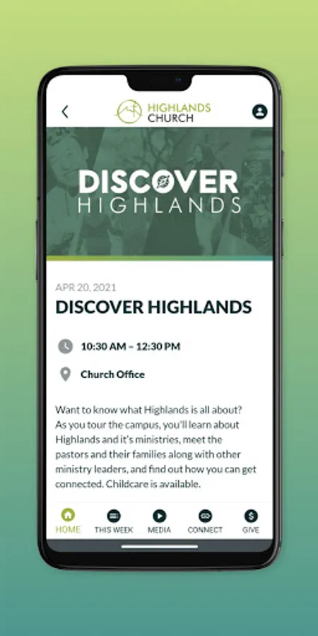 Our mission is simple: Love God. Love people. Make disciples. Connect with everything happening at Highlands Church through our smartphone app including fill-in sermon notes, announcements and events, Highlands Kids check-in, small group resources, prayer requests, online giving, and much more!
