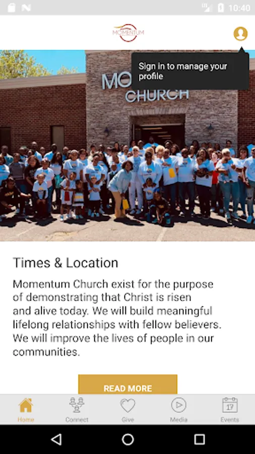 Connect and engage with our community through the Momentum Church Memphis app! Download our app to discover our media content, give a donation conveniently, or learn more about us. Momentum Church exists to worship God and build lives.