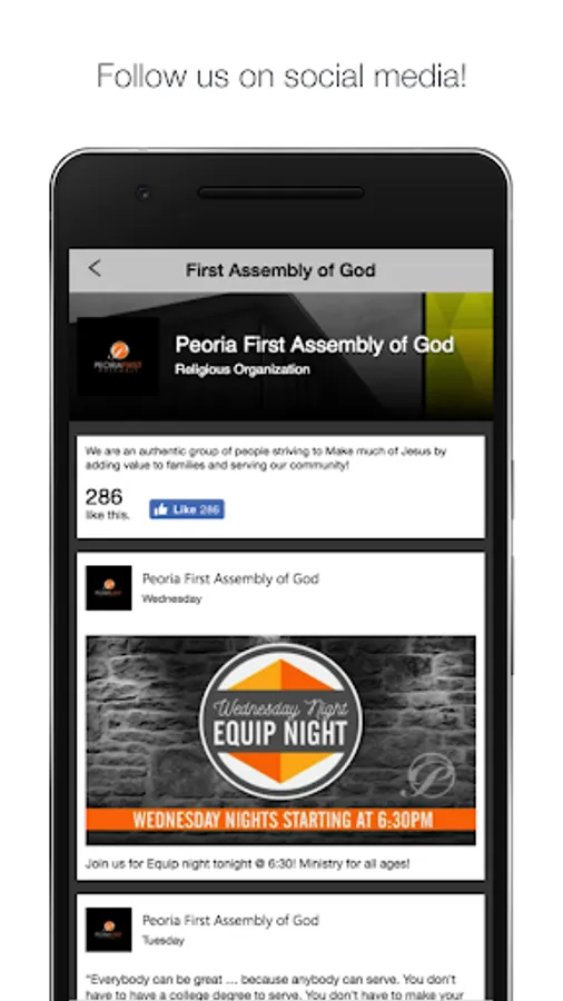 Connect and engage with our community through the Peoria First app! Download our app to discover our media content, give a donation conveniently, or learn more about us. Peoria First exists to make much of Jesus by adding value to families and serving our community.