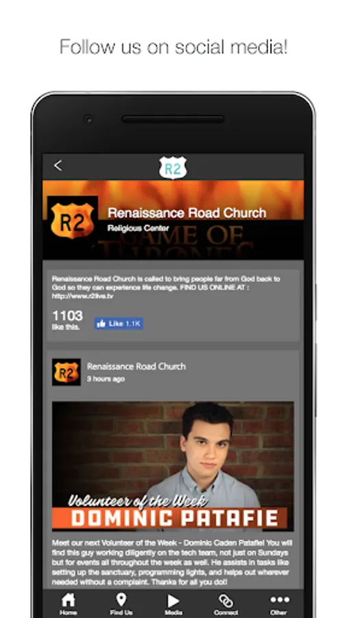 Connect and engage with Renaissance Road through the R2 app! Download our app to discover our media content, follow along with our messages, conveniently give, or learn more about us. Renaissance Road is called to bring those who are far from God back to God, so they can experience life change.
