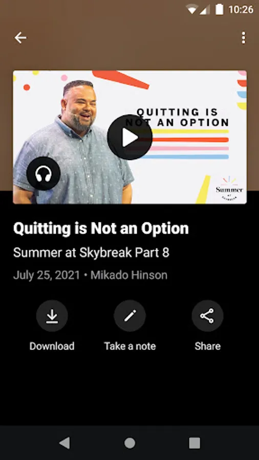 Connect and engage with the Skybreak Church app. Watch sermons, take notes, listen to podcasts, register for events, contribute, and more! You can also: