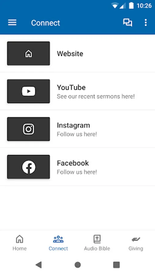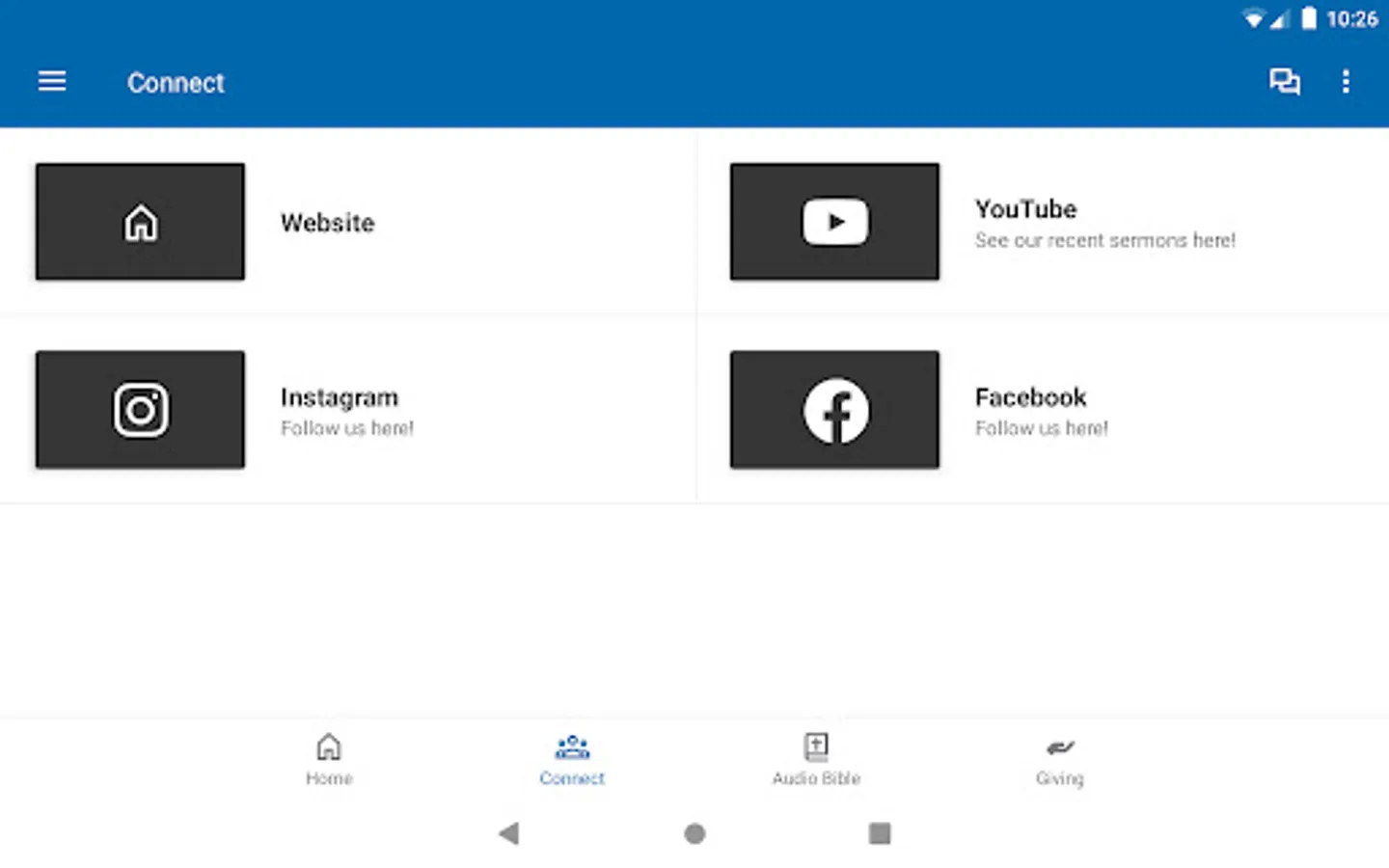 This app will help you stay connected with the day-to-day life of our church. With this app you can: watch or listen to past messages; stay up to date with push notifications; share your favorite messages via Facebook or email; and download messages for offline listening.