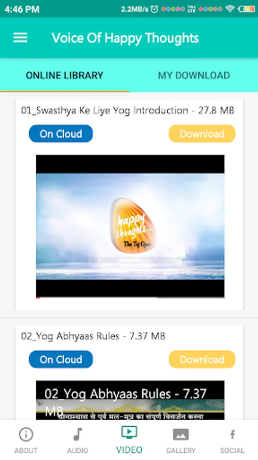 The application contains Sirshree's Meditations, Tejgyan Bhajan’s & Yoga videos.