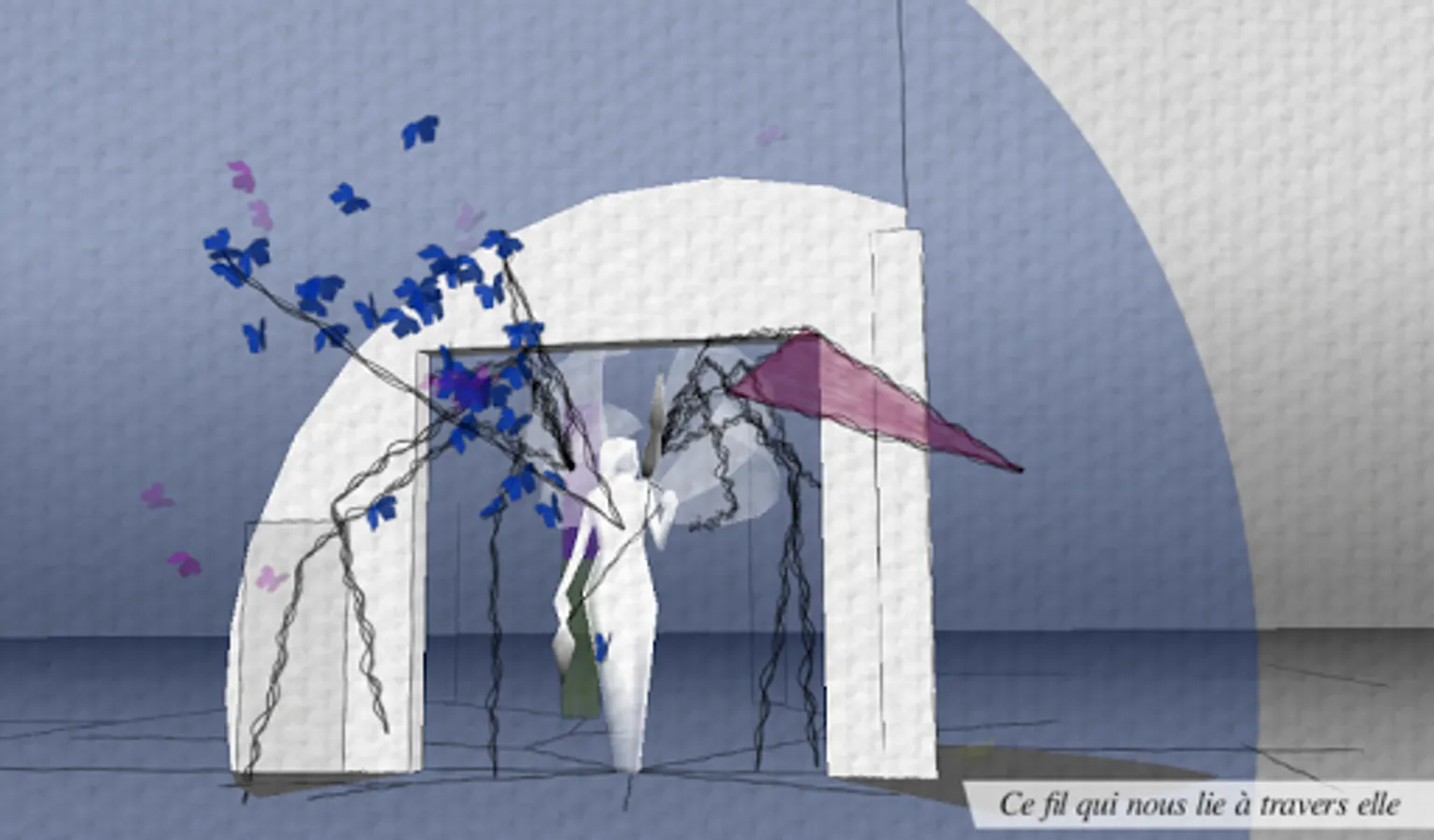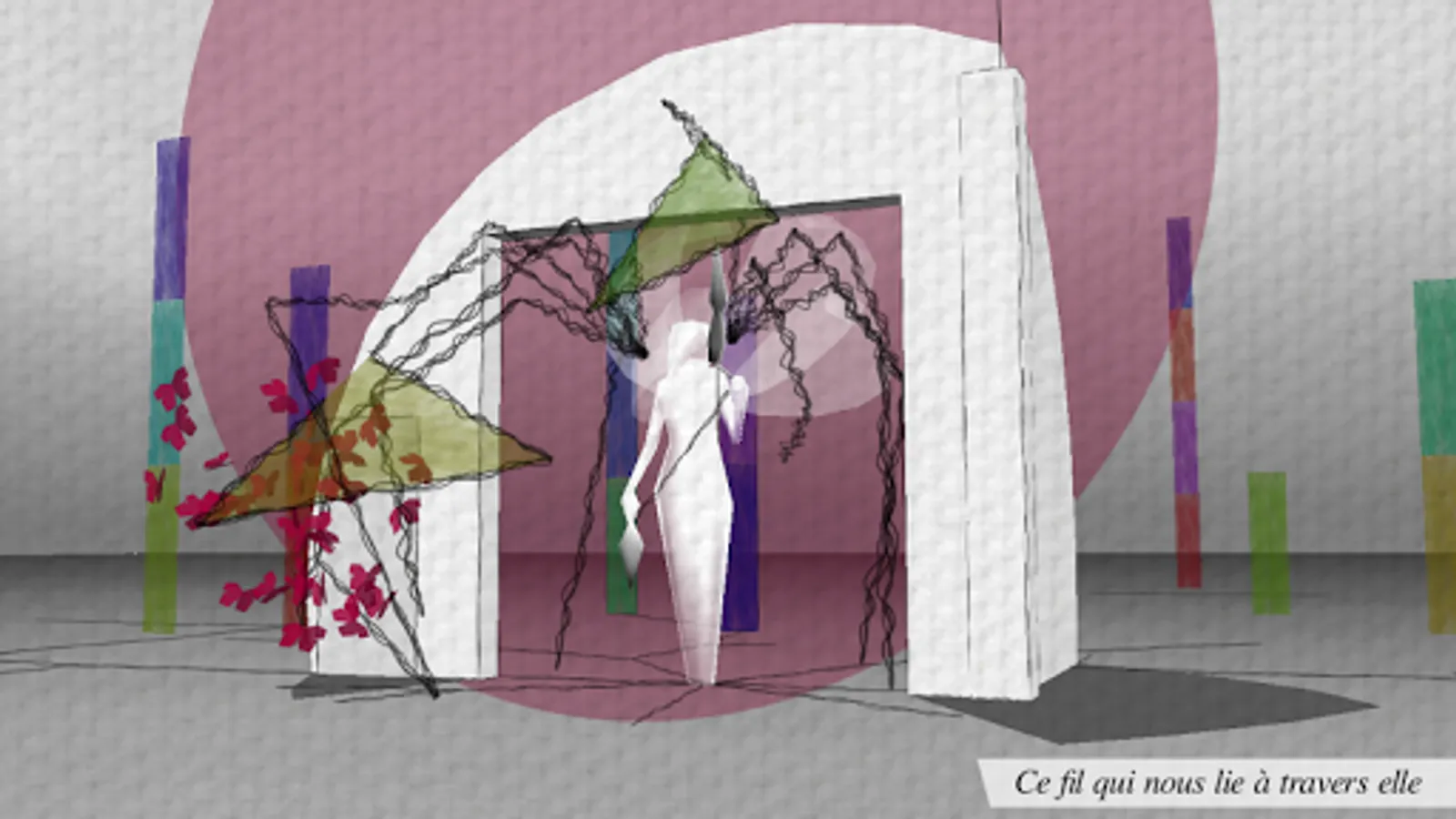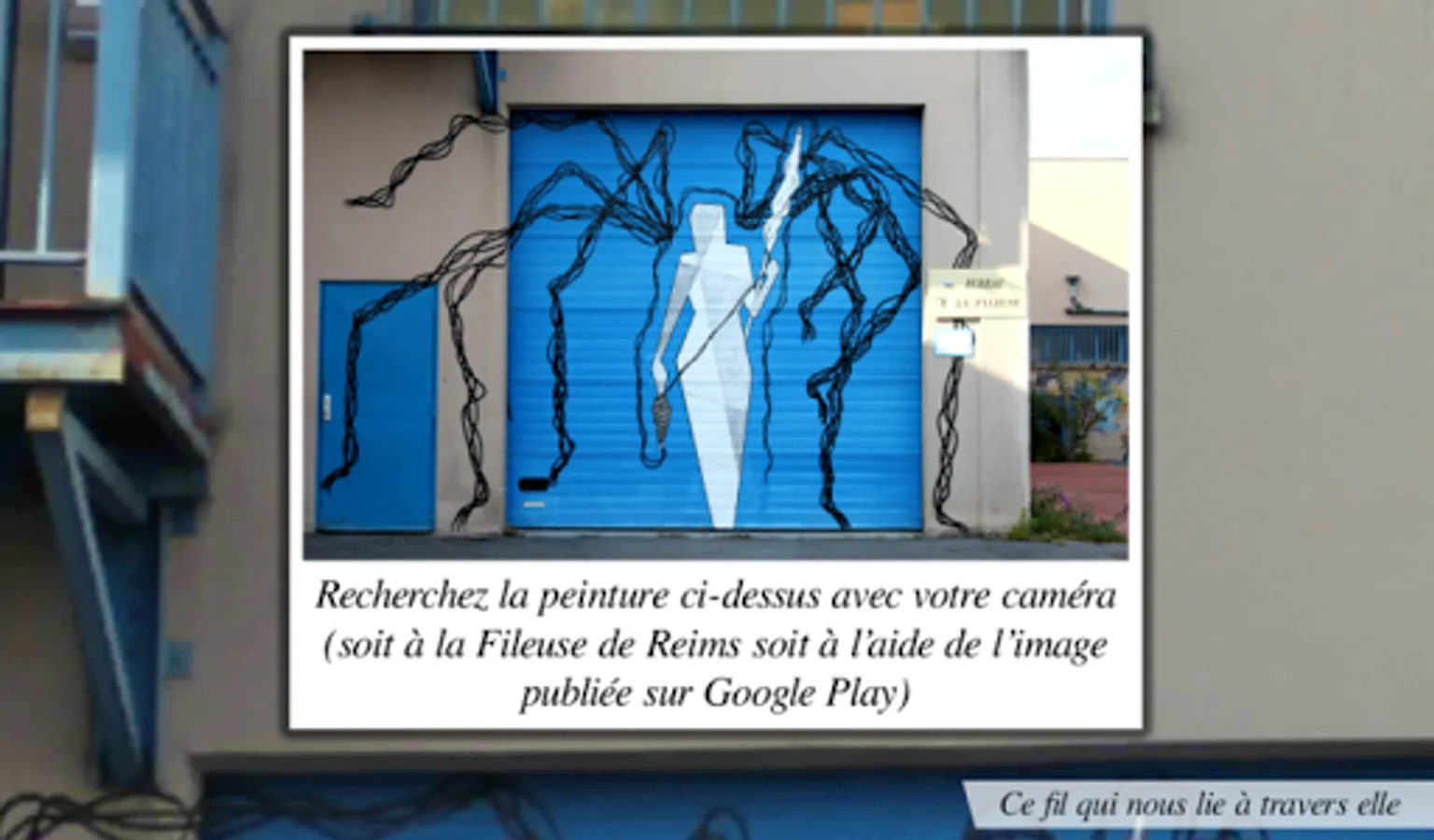 "This thread that binds us through it" is a work composed of a mural painted on the walls of the spinner of Reims and a digital part. It is a tribute to this iconic venue for contemporary art Reims what the spinner.