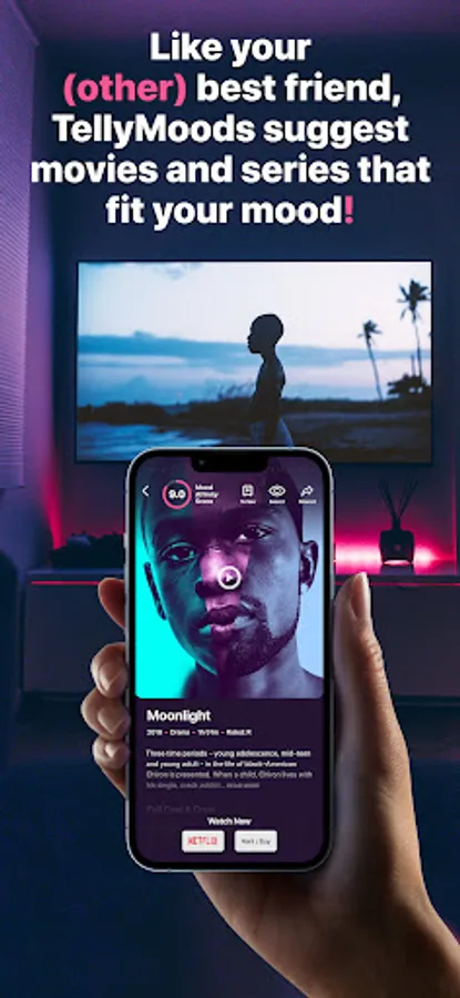 TellyMoods is a smart recommendation service that allows you to define the user's mood, helping to find in no time which Movie or TV Series to watch across the different platforms such as Netflix, Prime Video, Disney +, HBO, Hulu, Apple TV+, and much more!
