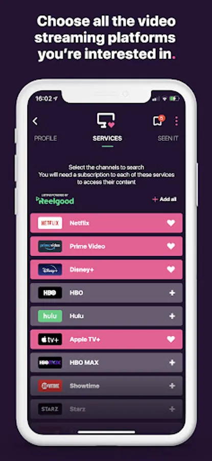 1) Create your profile and select the OTT video streaming platforms you are interested in.