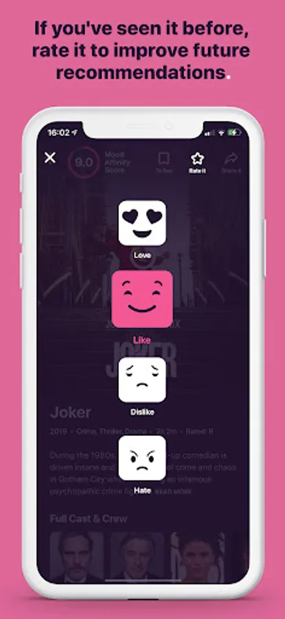 Like your well-curated playlists, your watchlist is filled with Movies and TV Series based on your different moods. Whenever we give you our recommendations, you can decide whether to watch immediately or bookmark them later. Our AI will also analyze your votes and learn to recognize the types and genres of your favorites.