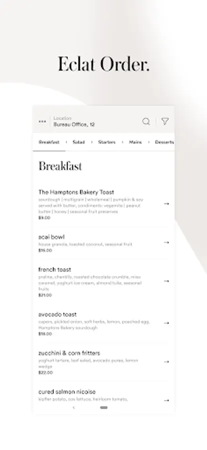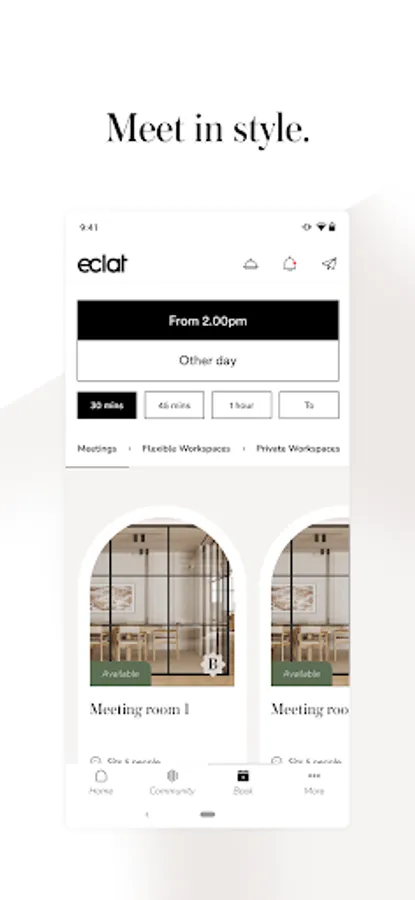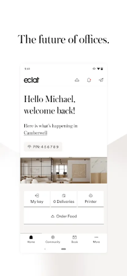 Download the Eclat app to manage every facet of your experience; meeting room bookings, bar/food menus, invitations, access control, automated payments, billing, print management and much more. Developed to offer our members the best-in-class platform to complement their first class office.