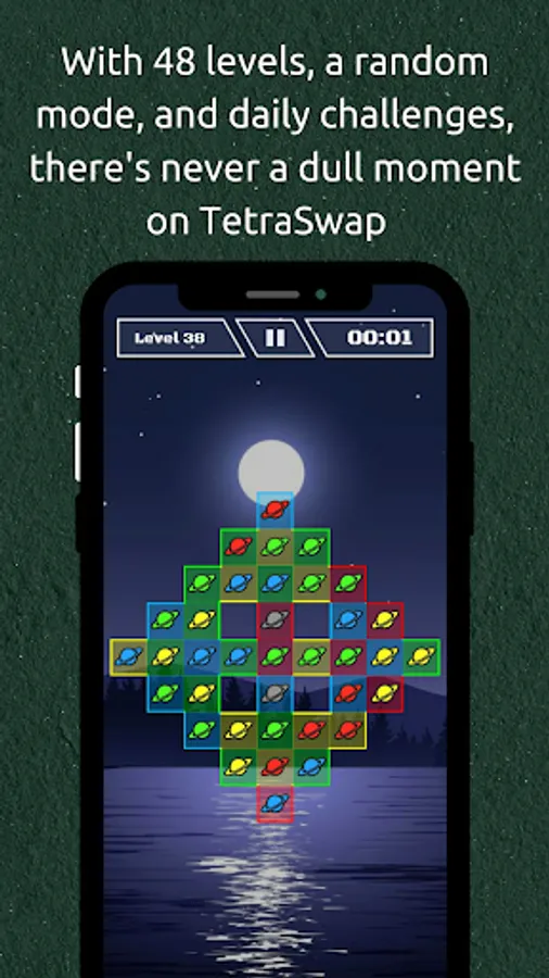 TetraSwap is a futuristic puzzle game available on phone, tablet and computer.