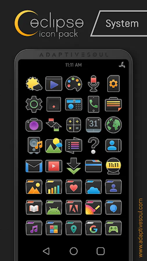 A supported launcher is required to use this icon pack! Some wallpapers & widgets in the screenshot previews are property of their respective owners and might not be included with Eclipse Icon Pack.