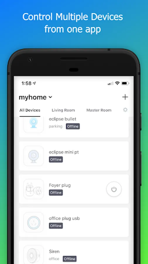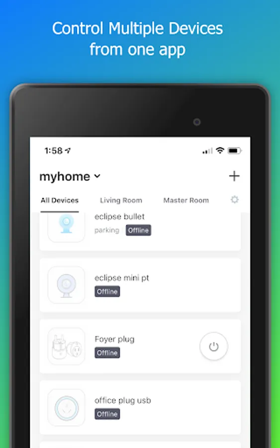 • Add and control multiple devices at once with one App