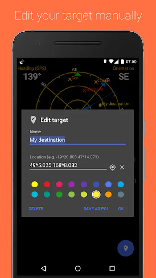Tools provided: compass with magnetic and true north, leveling tool, waypoints: mark or share your location and navigate back later using the Radar (especially useful for geocaching, or quickly marking your actual position).
