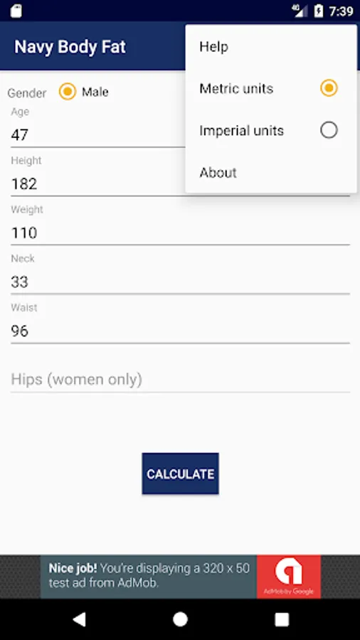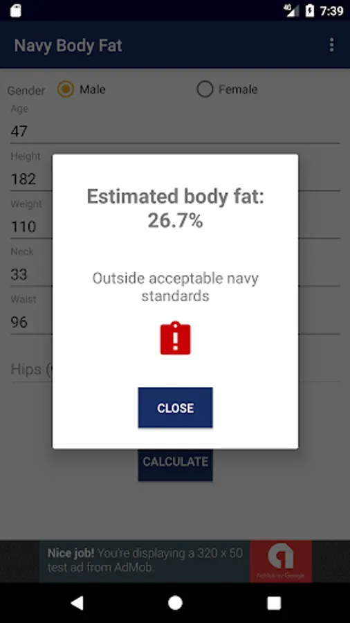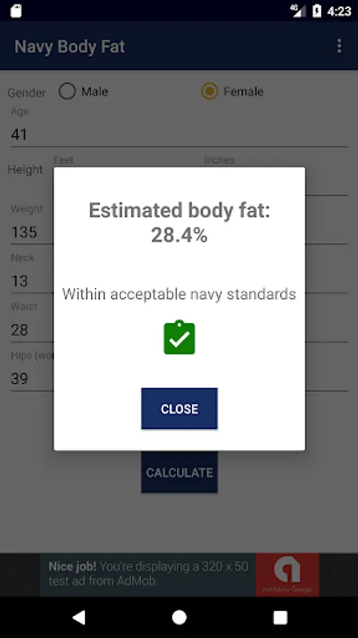 Now in Beta, the Navy Body Fat Percentage Calculator app helps you easily plug your body circumference measurements into the formula commonly known as the 'Navy method', long used by the US Navy as part of its fitness readiness test (FRT) and body composition assessment (BCA).