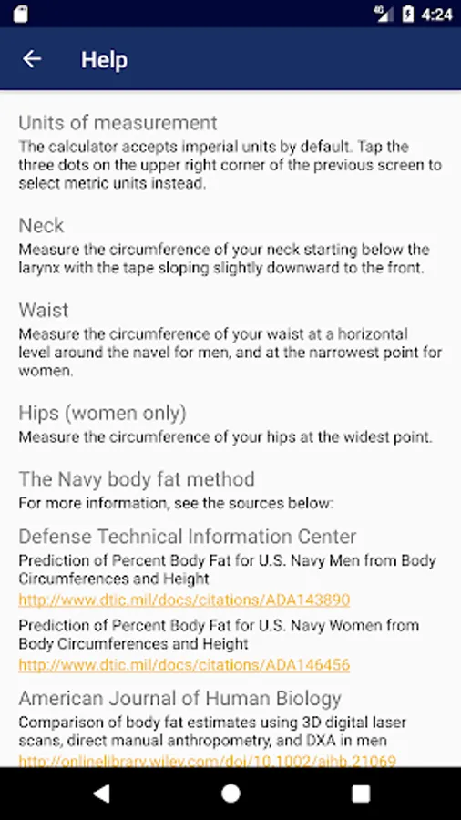 While not one of the most accurate methods of measuring body fat (it is an estimate, after all) it is in close agreement with sophisticated body composition analysis methods. Check out the Help section of the app for the juicy references to the original research papers!