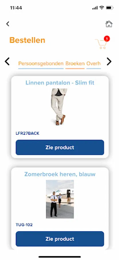 The app is used by the employees. The range of work clothing and accessories is determined by the employer. The employer agrees with the supplier(s) which work clothing and accessories can be ordered in the app.
