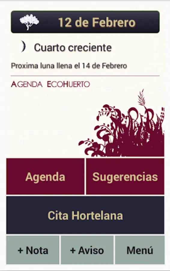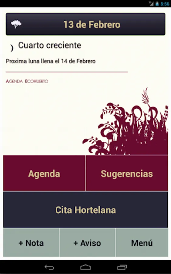 It includes an agenda where you can include daily notes about your garden and notices in the future to let you know for example every 3 days of watering certain plants (In Android versions greater than 4.0). In addition we have included a section with very nice hydrangea phrases and sayings.