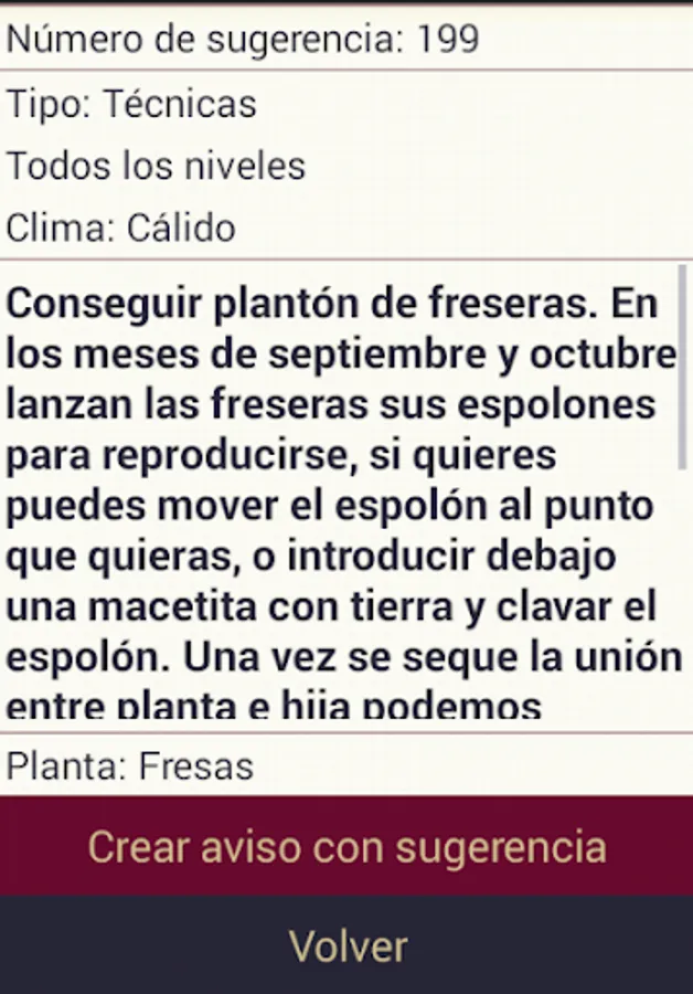 We are already working to increase suggestions and functionalities in future updates. If you want a clarification or have a question about a suggestion, send it to us on Twitter @AgendaEcoHuerto with the number of the suggestion. For suggestions and comments about the application here on Google Play :)