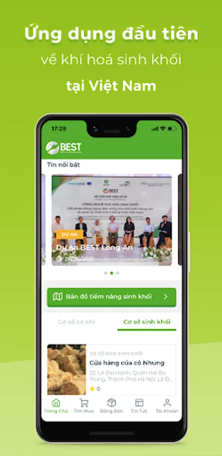 This is the official application of the project "Biomass gasification technology - Sustainable energy solutions for agricultural product processing and waste management in rural Vietnam (BEST)" funded by the European Union, implemented by CCS and Oxfam in Vietnam, technology company TESO (tesosoft.com) is a manufacturer of application software. The application connects information between buyers (small businesses and processing farmers) with sellers (companies providing services, installing & maintaining incinerators; collectors, processors & distributors) distribution of biomass fuel).