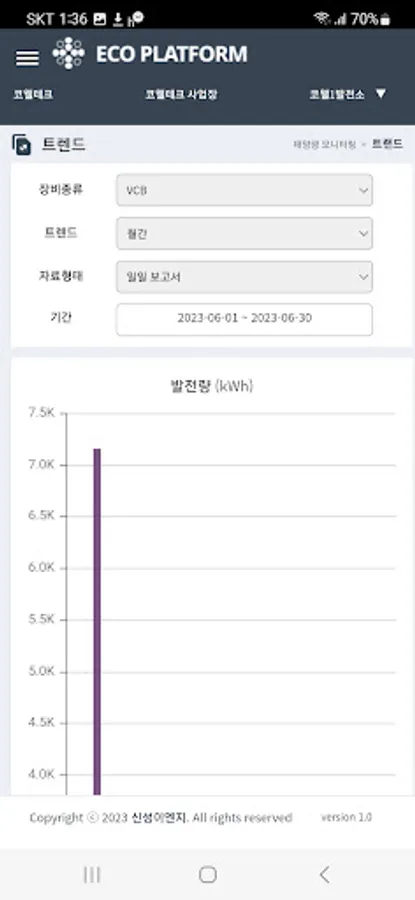 - 발전량을 일별, 월별로 선택하여 데이터 추이를 그래프로 확인이 가능합니다.