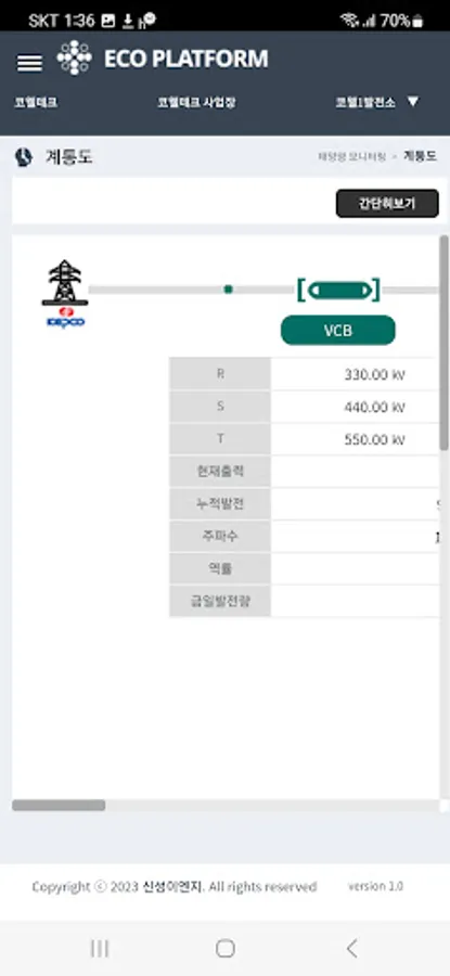- 현장에 설치되어 있는 VCB, ACB, 인버터를 계통도상에 표시하여 발전소의 운영 상태를