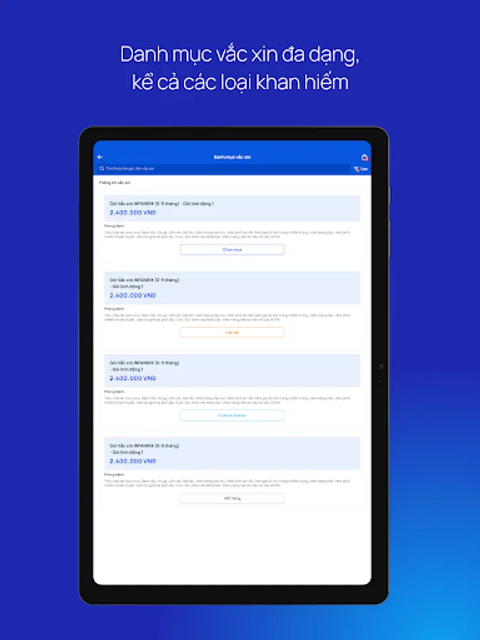 Official vaccination portal of VNVC - The leading immunization system for children & adults in Vietnam in terms of professional quality and service, in order to connect with Customers more often and conveniently, helping to keep track of the schedule. vaccination history, recommend necessary vaccines for customers, promptly receive important information about disease, health care instructions from leading experts. VNVC application is also a place to quickly update preferential policies for loyal customers, bringing interesting experiences: