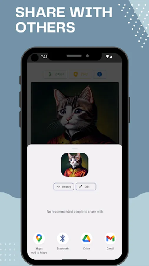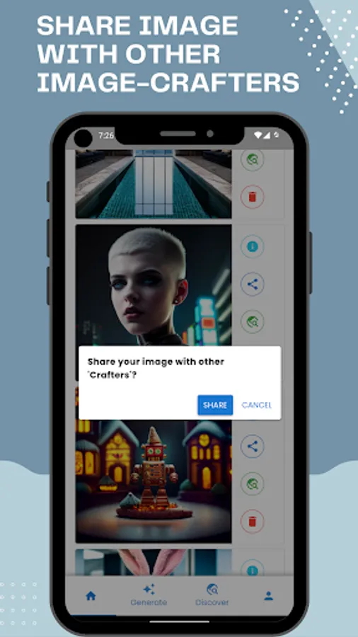 If you make something you really like with our AI art generator, you can share it on WhatsApp, Facebook, Instagram, and more, all from the app!