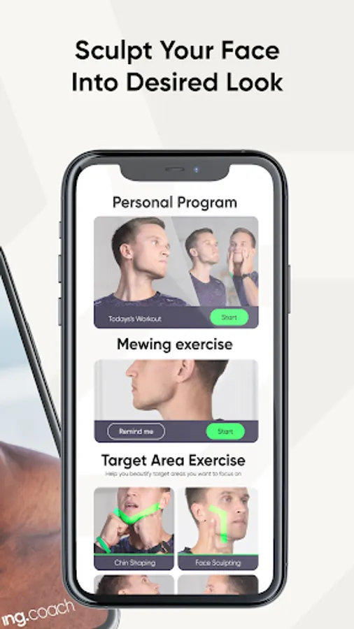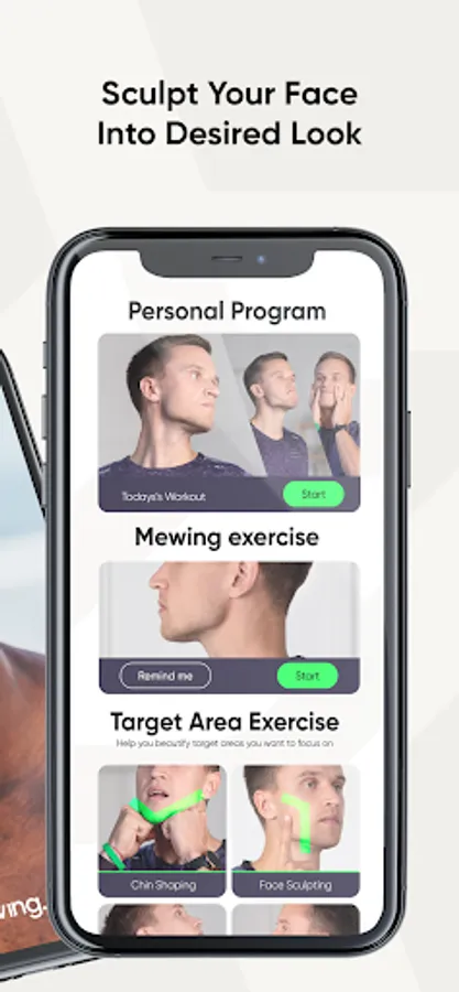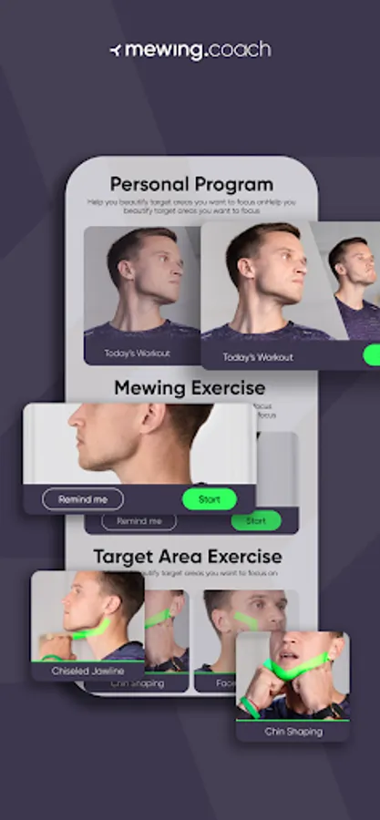 The Mewing Coach app was created by our mewing experts to help you build and keep up with a consistent facial workout routine. It brings all the guides and tools needed for facial fitness workouts: