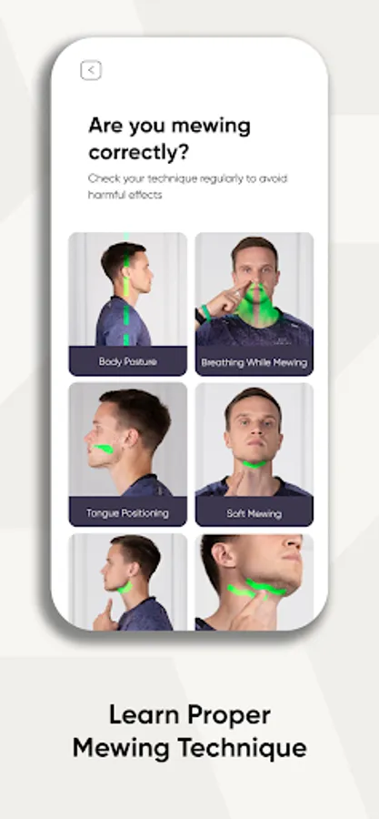 All the features of the Mewing Coach app are created with a deep knowledge of what is mewing. It gets to the underlying cause of the problems of asymmetrical facial structure - improper tongue posture.