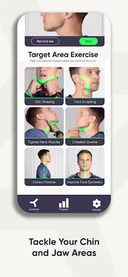 The Mewing Coach app provides you with a staggering number of face exercises to improve a weak jawline and asymmetrical face. Here are some of them: