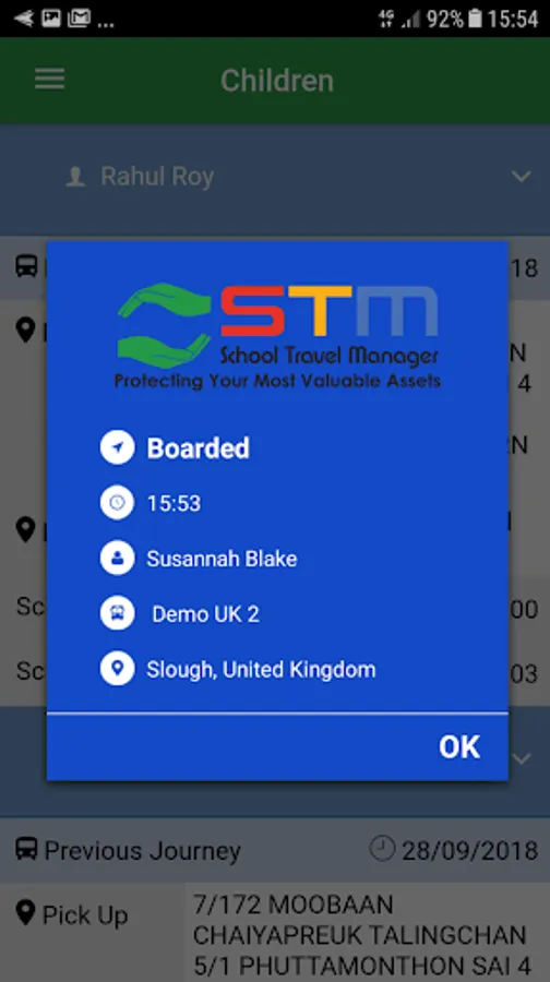 Each user is assigned a number of passengers and can view real time information and notifications with information such as boarding and alighting times, the stop name and any messages sent from the system.