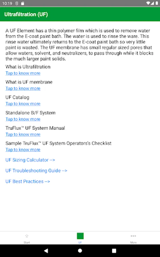 App the provides information on the ultrafilter, anode cells, Industry 4.0 sensors, and water saving equipment. Topics include: trouble shooting, best practices, tips and tricks, equipment sizing calculators, and general information useful to new users too.