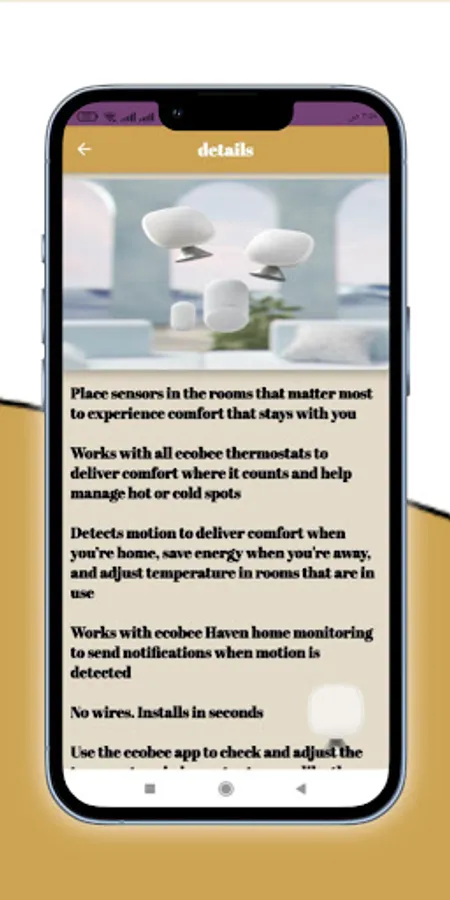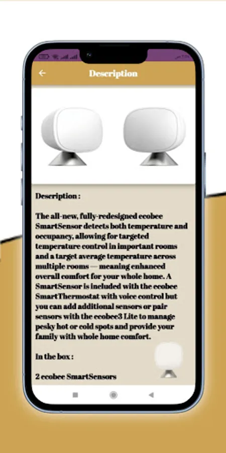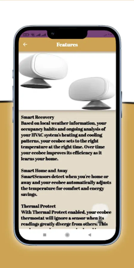 In ecobee Smart Sensor 2 Pack Guide app we supported many sections of content that will let you now more information about ecobee Smart Sensor 2 Pack.