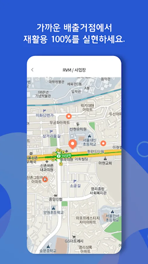 We provide resource circulation O2O (Online to Offline) platform service for general citizens, local governments, companies, private organizations, and educational institutions. We are installing and operating resource circulation bases nationwide through agreements with each institution. Dischargers (general citizens) separate and discharge recyclables (the entire range of household wastes) through resource circulation bases, and provide oil price compensation and recycling information through a resource circulation platform. (Carbon reduction, waste tracking) is provided. Each institution that uses the resource recycling platform service receives data on the discharge of recyclables through the platform, and educational institutions provide eco-conversion education to students.