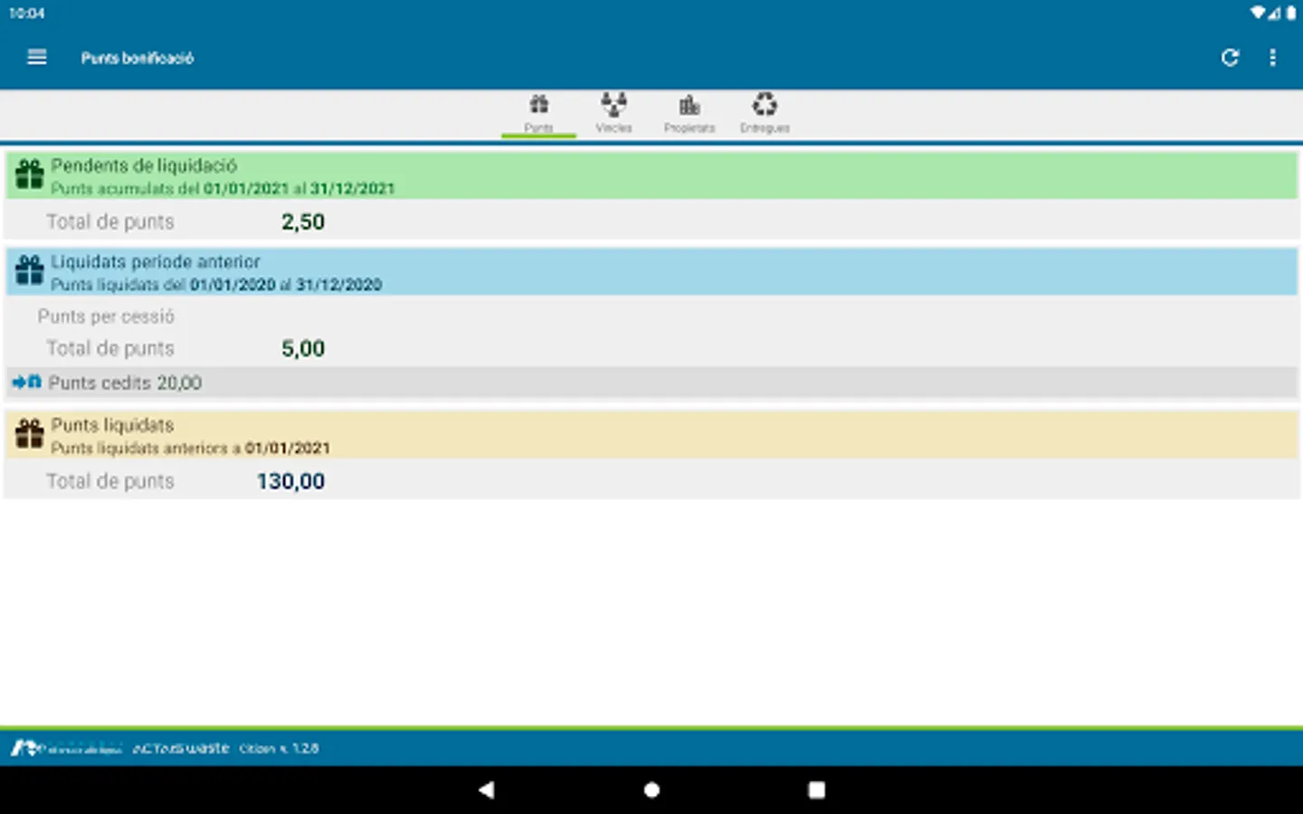 From the Vincles menu, enter who altre DNI / CIF will give away-li els Ecopunts accumulats i futurs.