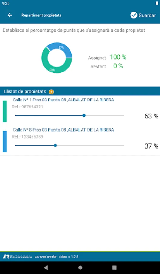 From the Owners menu you can assign the points to one or several cadastral references in the proportion you want.
