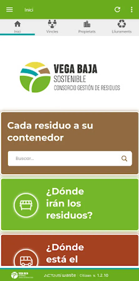 The Vega Baja Sostenible application is a tool that will help you correctly manage the waste you generate and take care of the planet. From it, you can access a search engine with information on the most frequent household waste and find out which container or clean point you should throw it into. You will also discover the location and hours of the consortium's mobile and fixed ecoparks.