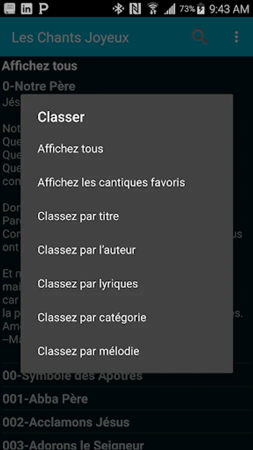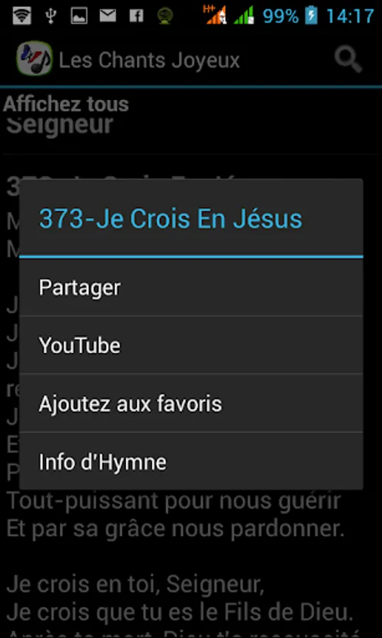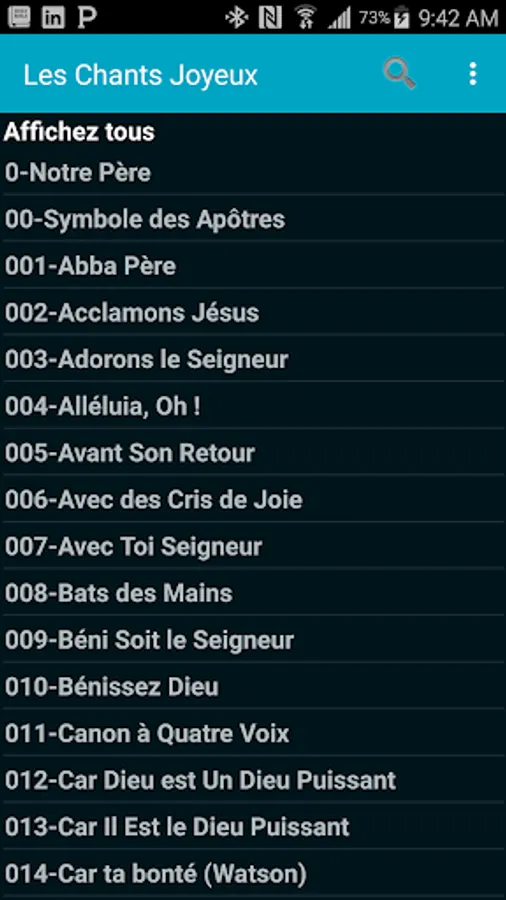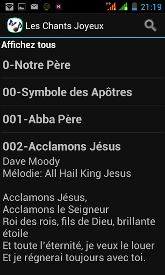 Youth WIth a Mission-Niger has given permission to Ecodia LLC (through their agent) to make a free Android app using 482 Christian songs and hymns from their French songbook, "Soyez Toujours Joyeux". Additionally, other public domain French hymns and local French Christian song compositions have been added to the app, with the potential for more songs to be included in future updates. Close to French 700 songs can be found in the app.